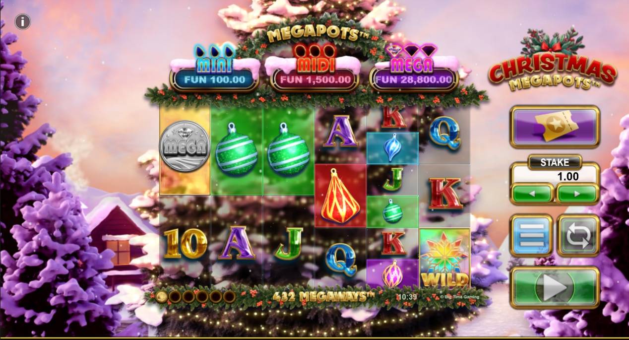 Big Time Gamingより、2025年12月1日にリリースされたスロット『Christmas Megapots』の紹介記事。