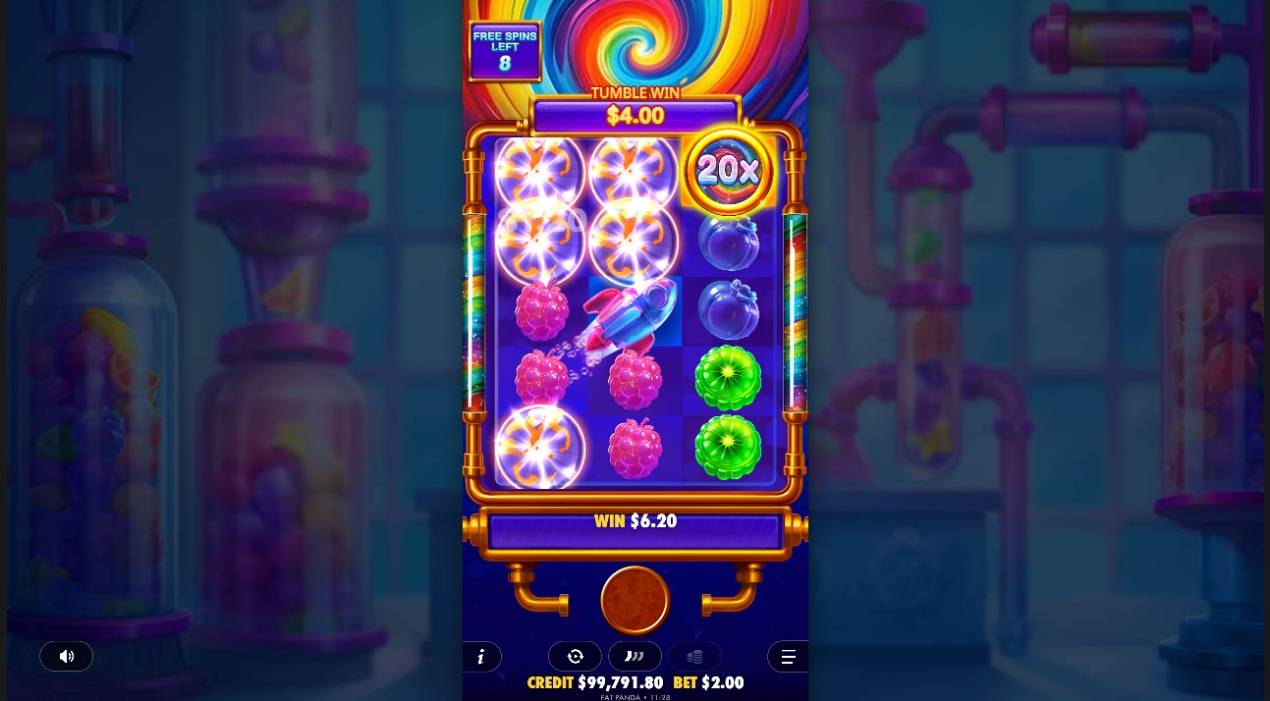 Fat Pandaの『Sweet Burst』は、ゼリー状のフルーツキャンディーをテーマにしたスロットで、タンブルとマルチプライヤーシンボルが満載のフリースピンが楽しめます。