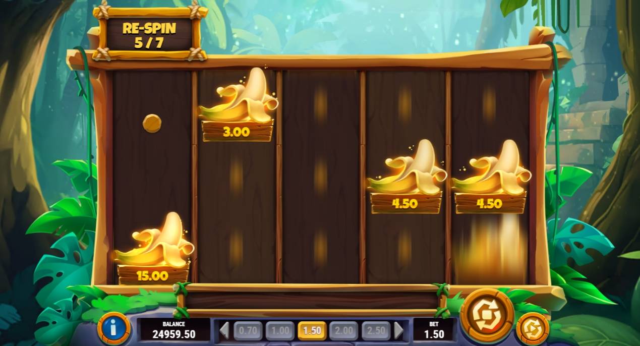 プレイヤーは4回のリスピンを受け取り、ボード上に新しいバナナが出現するたびに1回の追加スピンが追加されます。