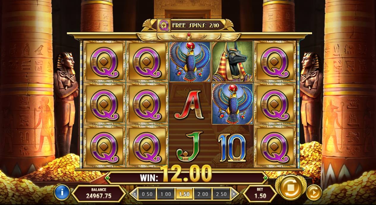 トゥーム・スキャッターは5つのリールすべてで出現し、ペイラインの評価時に他の通常シンボルの代わりに表示されます。