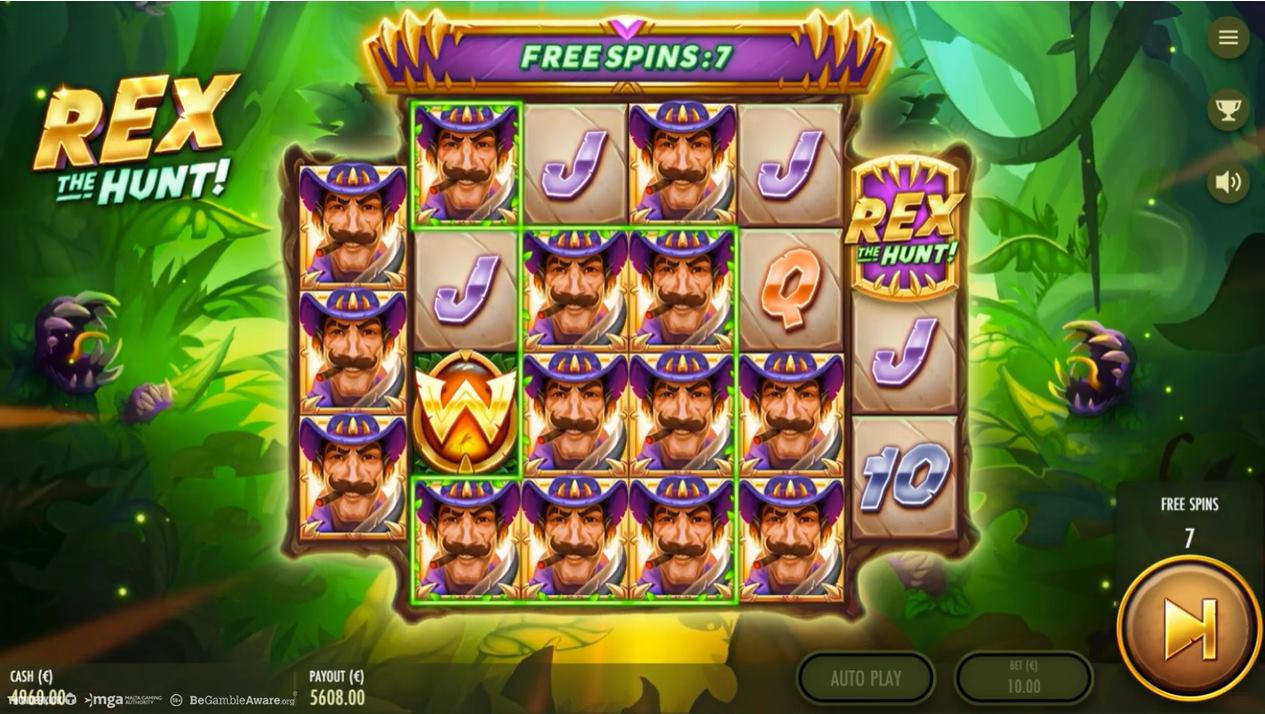 『Rex the Hunt』はアクション満載のスロットで、フリースピンでミステリー シンボルが粘着させ、勝利を獲得しちゃいましょう!