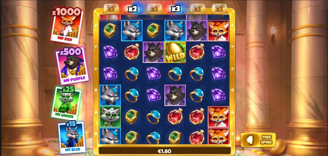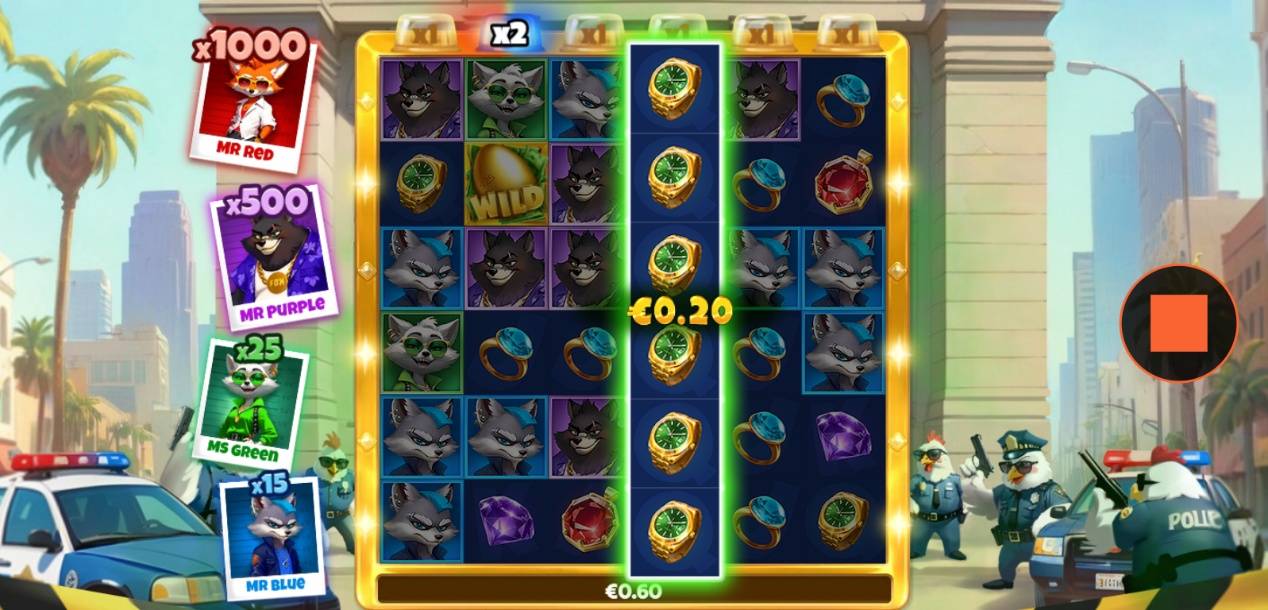 『4 Foxx Crew WildEnergy MultiMax』は、まるで強盗映画から飛び出してきたような、ハイスピードなカートゥーン犯罪アクション、スピンごとに、まるで強盗映画の追跡シーンのような感覚を味わえます。