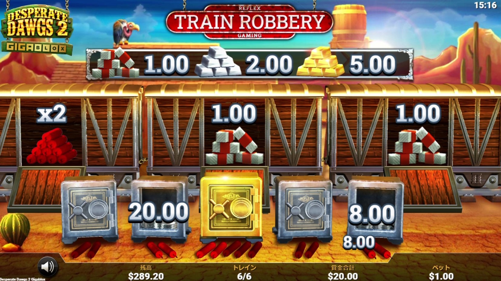 6つ以上の赤いスキャッターシンボルを着地させると、列車強盗ボーナスラウンドが発動されます。