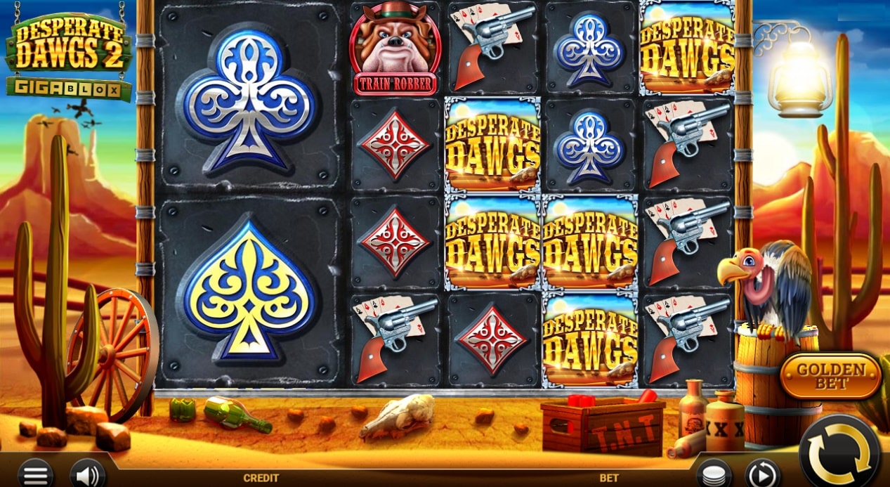 『Desperate Dawgs 2 Gigablox』は、ベース ゲームに 40 ペイラインを備えた 6×4 リールを特徴とするまったく新しいビデオスロットです。