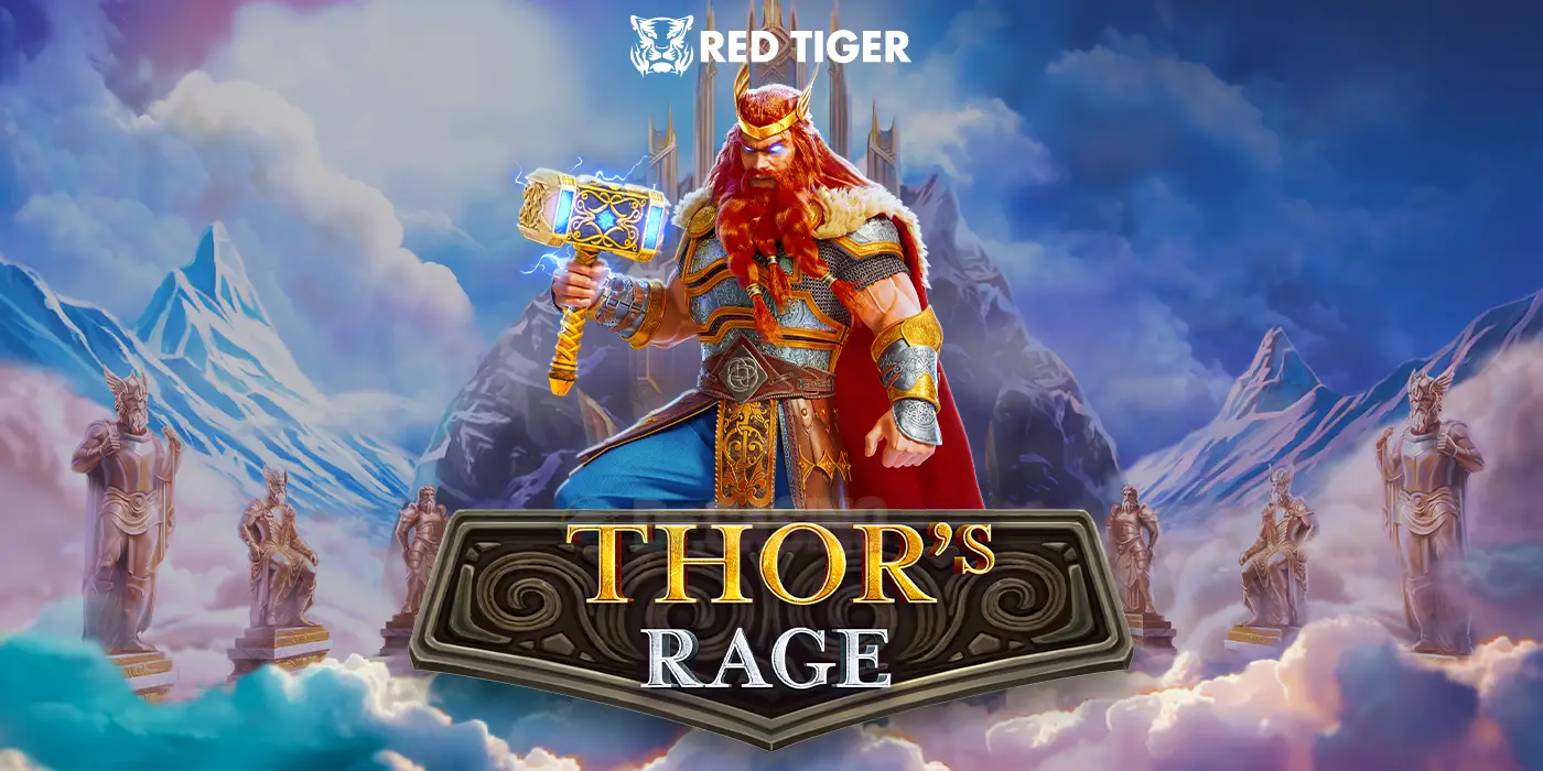 Red Tigerより、2025年8月3日にリリースされた最新スロット『Thor’s Rage』の紹介記事。北欧神話の雷神トールがリール全体に噴き出し、行く手を阻むもの全てを粉砕!雷鳴とともに、最大1000倍の巨大なマルチプライヤーが降り注ぐ強烈な攻撃を繰り広げます!
